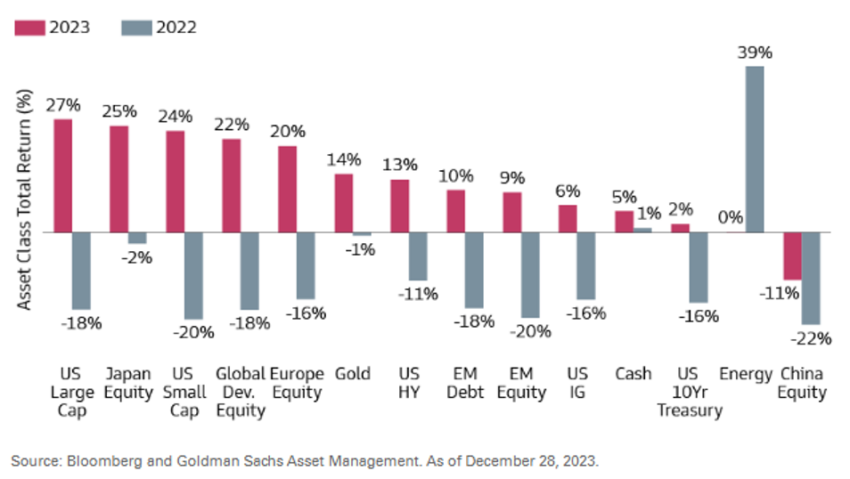 Most of the other asset classes clawed back what was lost in 2022, except China, which finished 2023 down -11% after a -22% return in 2022.